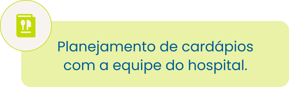 • Cardápios e processos adaptados à realidade assistencial e operacional.